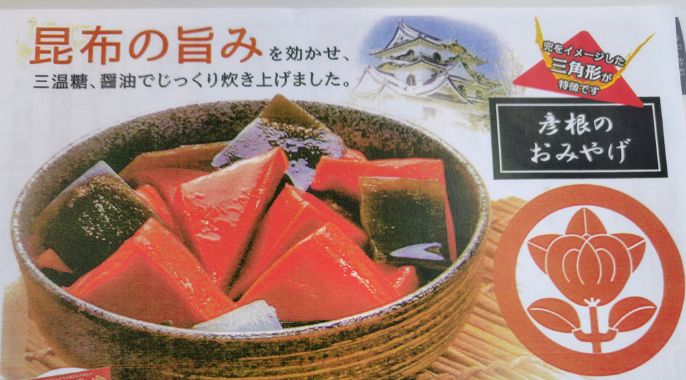 「ひこにゃんグルメ」のひとつに選ばれた赤こんにゃくは、地元彦根でも、観光客の方々からも人気があります。特に、この味付赤こんにゃくは、三角形に切った赤こんにゃくを、昆布の旨味をきかした当店オリジナルの味で、炊きあげました。その味を気に入ってのリピーターも多いです。