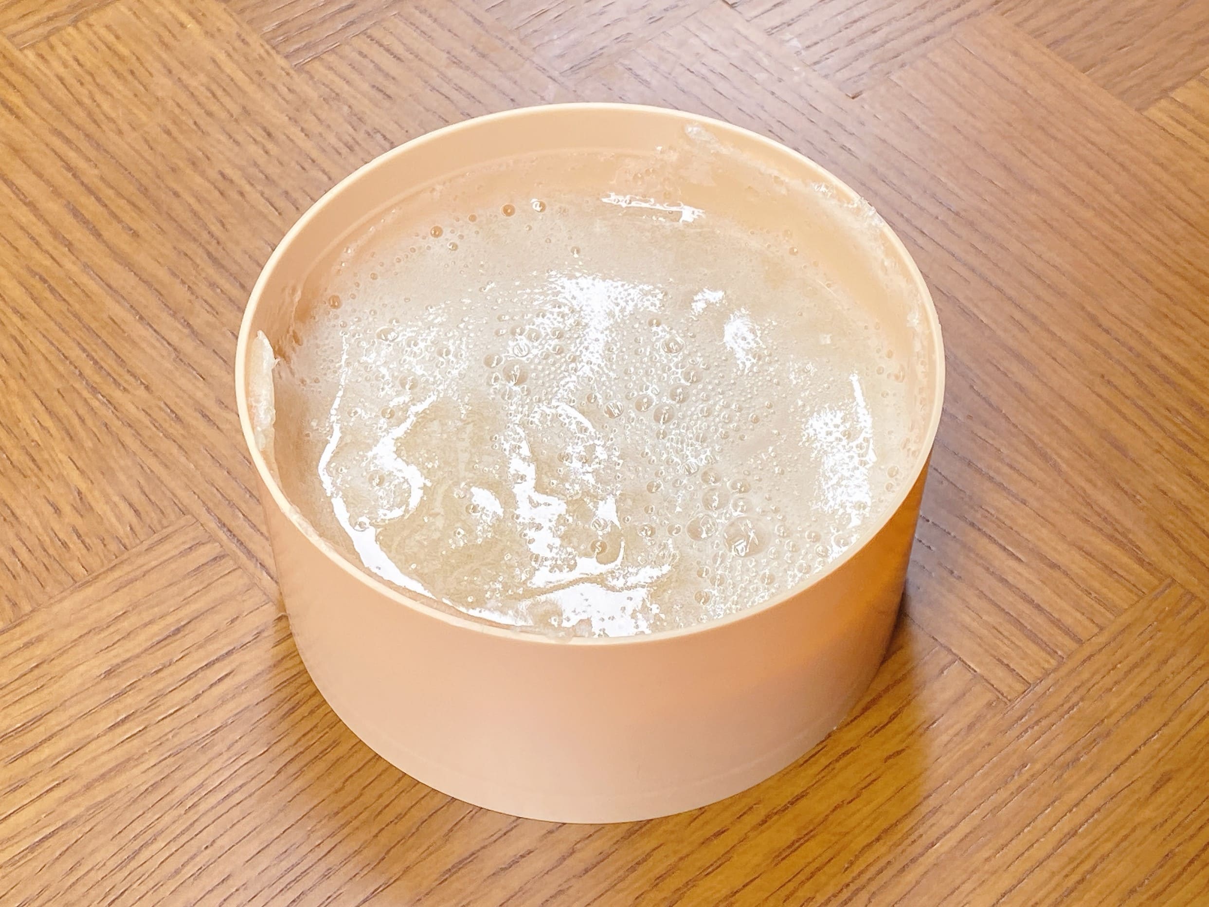 フタを開けると白いモコモコの泡が立っていて謎は深まるばかり…